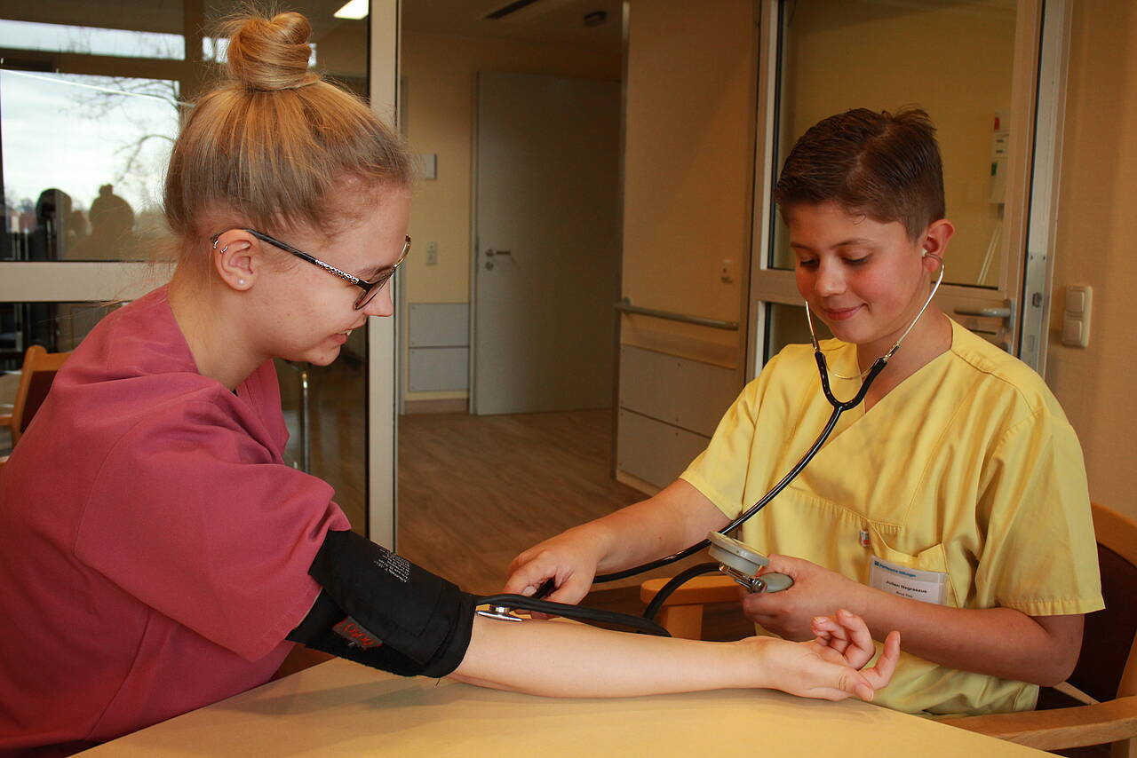 Am 28. März öffnete das Klinikum der Pfeifferschen Stiftungen seine Türen für 12 Jugendliche, um erste Einblicke in den Beruf des Gesundheits- und Krankenpflegers zu gewinnen. Für diesen anspruchsvollen und vielschichtigen Beruf werden soziale und medizinische Kompetenzen verlangt, wie auch technische Fähigkeiten und Freude an der Arbeit am Menschen. Zudem bietet er viele Entwicklungsmöglichkeiten in vielfältigen Arbeitsfeldern in einem spannenden und zukunftsträchtigen Umfeld.